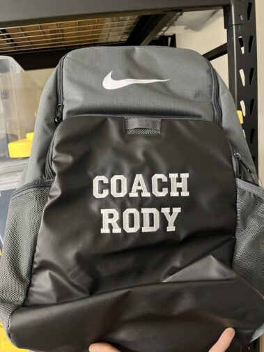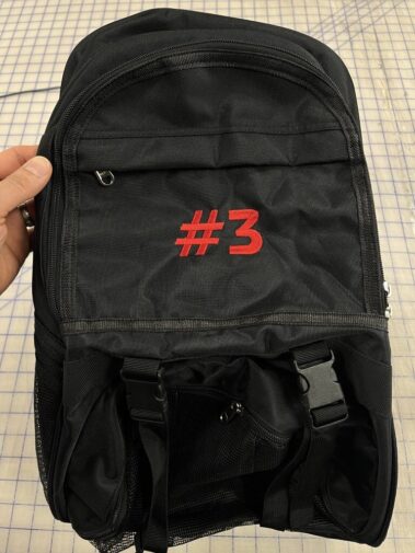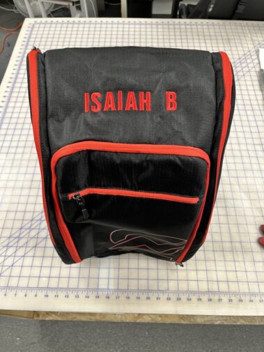 Do you have a bag you want logo or text custom embroidered? We can do custom embroidery on most bags that will fit in our embroidery machine. Tote bags, duffle bags, backpacks, golf bags (with detachable flap)