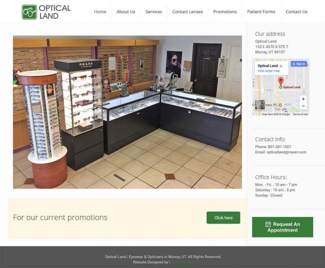 Here is another website we designed for a small business in Murray Utah. (Optical Land www.slcopticalland.com) The business owner contacted us wanting to make a website for his Eye Glass business with simple and clean look. We were able to finish the website in 1 week with all the contents (text & photos) provided by the…